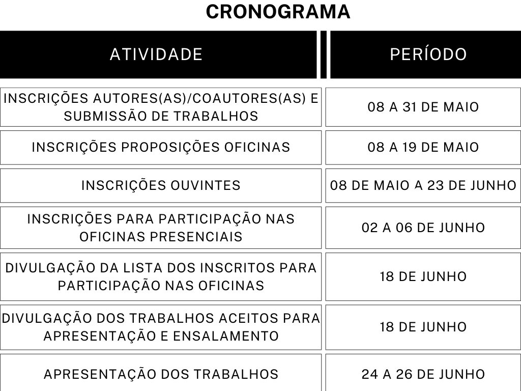 Link para as inscrições ouvintes e autores/as: ACESSE AQUI